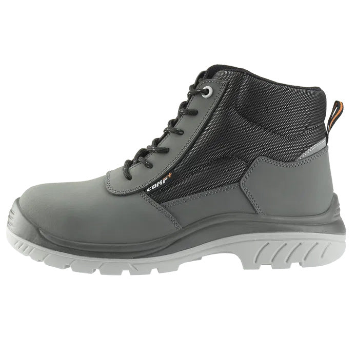 La Bota de Seguridad Comp+ S3 ofrece máxima protección en ambientes industriales y de construcción. Con puntera de fibra de vidrio y plantilla antiperforación textil, garantiza seguridad contra impactos y perforaciones. Su material de piel nobuck gris es resistente al agua, mientras que la suela antideslizante en tonos grises y los detalles reflectantes en naranja mejoran la visibilidad. Con horma ancha, es ligera, flexible y cómoda, ideal para trabajadores en almacenaje, transporte, y construcción que buscan confort y seguridad.